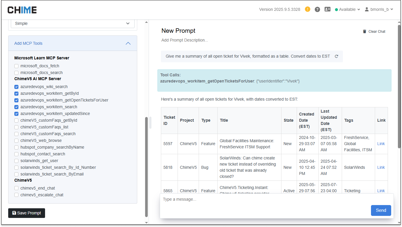 We’ve introduced a built-in MCP Server that allows Chime to act as a central hub for AI tools and integrations. Each tenant gets its own dedicated server endpoint, protected with secure API key authentication. This means you can connect external systems or AI workflows to Chime more easily, while keeping access controlled and secure.