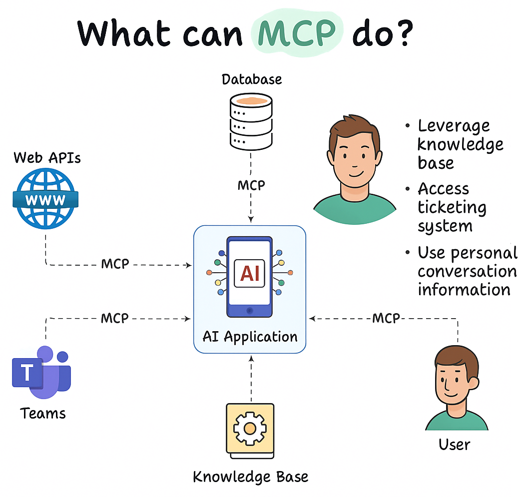 MCP is an open protocol that standardizes how applications provide context to large language models (LLMs). Think of MCP like a USB-C port for AI applications. Just as USB-C provides a standardized way to connect your devices to various peripherals and accessories, MCP provides a standardized way to connect AI models to different data sources and tools. MCP enables you to build agents and complex workflows on top of LLMs and connects your models with the world.MCP provides: